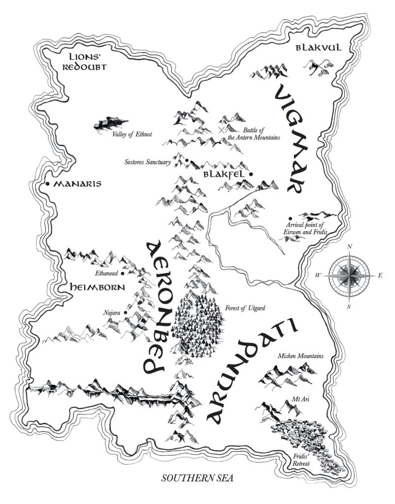 Perhaps I can come up with another, more elaborate design for The Ravenstones in the months to come, and by the time Volumes 6 and 7 are in print, another map focusing on central Aeronbed and the northern borders of Heimborn, where the final action in the series is concentrated.