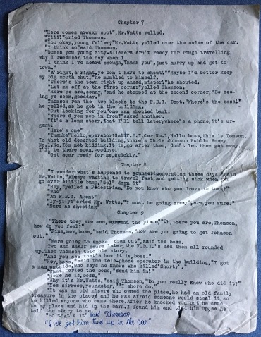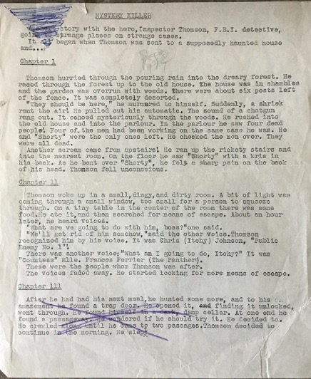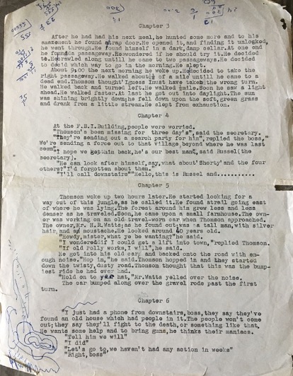 I suspect my mother typed the story up, but it might even have been me (so many mistakes!). I note the original Chapter 3 was deemed not up to snuff, crossed out and replaced (see page 2). The formatting also changed.