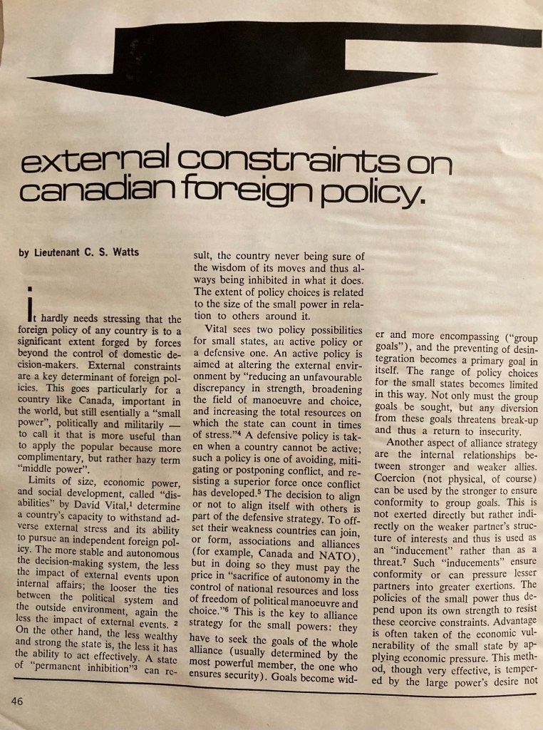 My contribution to Canadian Defence Quarterly, Vol. 2, No. 1, Summer, 1972