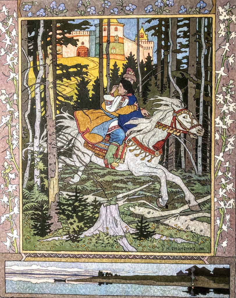 Less well known to the western world are the works of Ivan Yakovlevich Bilibine (sometimes spelled Bilibin), a Russian illustrator who lived from 1876 – 1942, dying tragically (of starvation) during the two year, four month siege of Leningrad during World War II. Ironically, he had left Russia after the 1917 revolution, to live abroad (mainly in Egypt and France) only to return to the Soviet Union in 1936 after longing for his homeland.