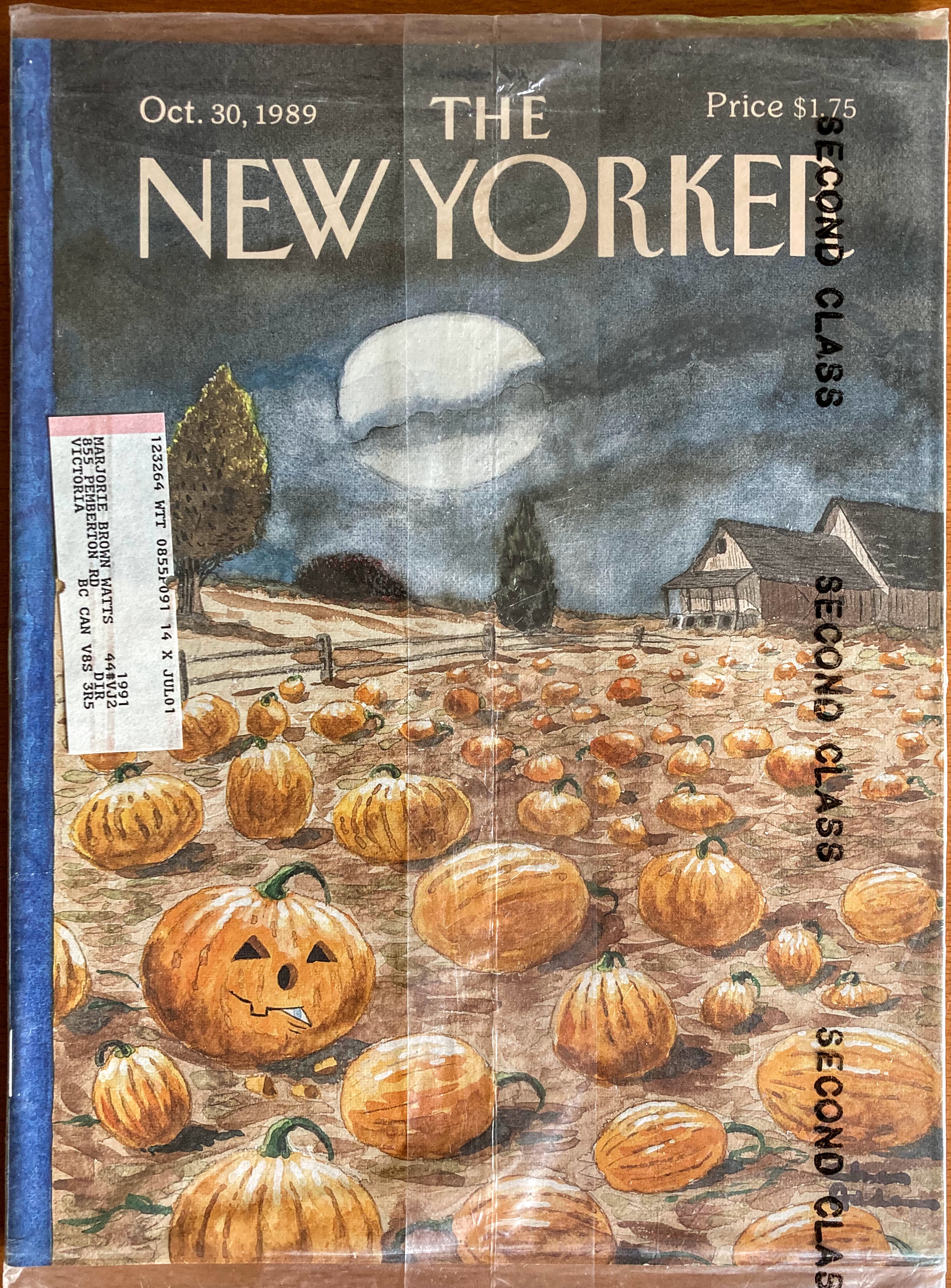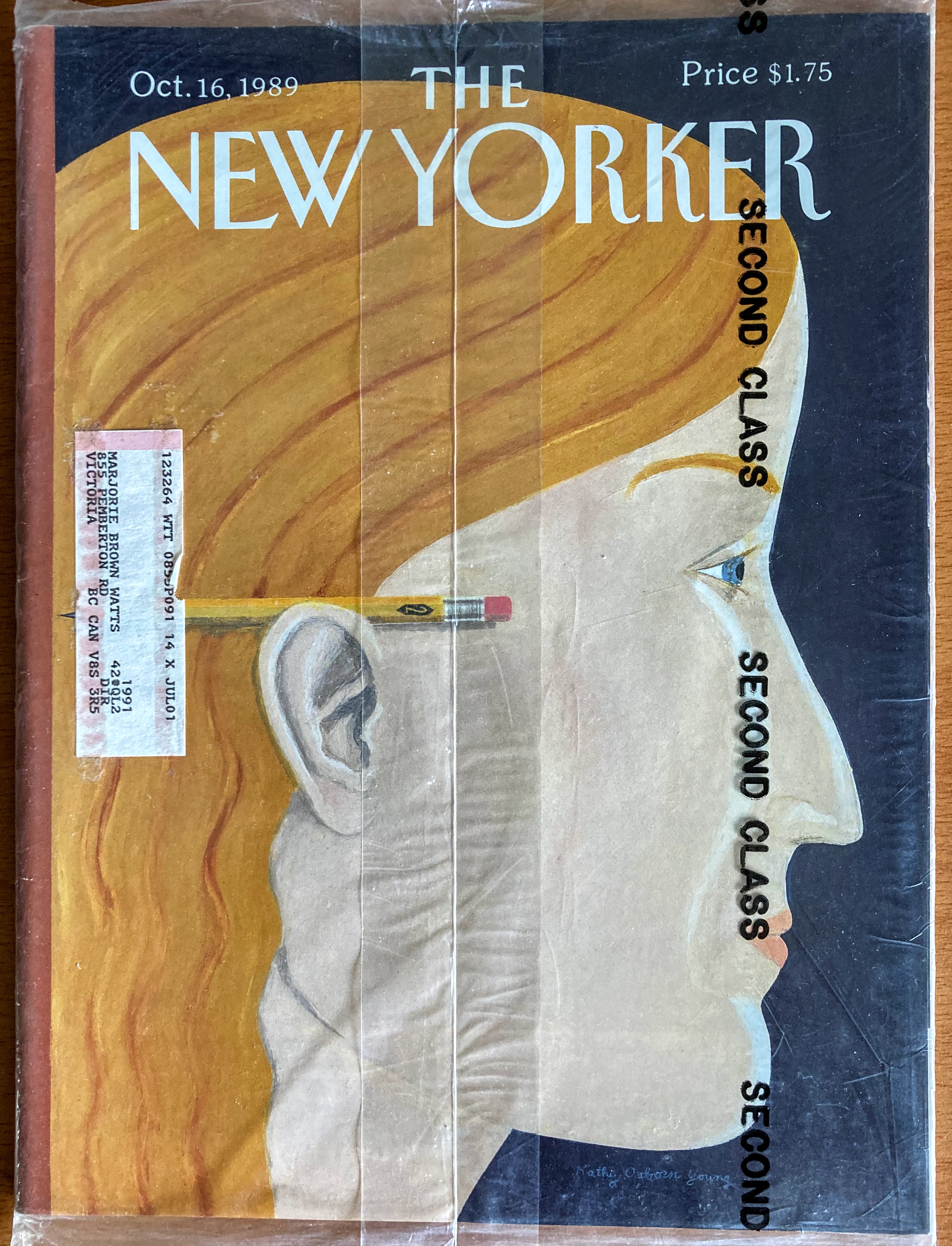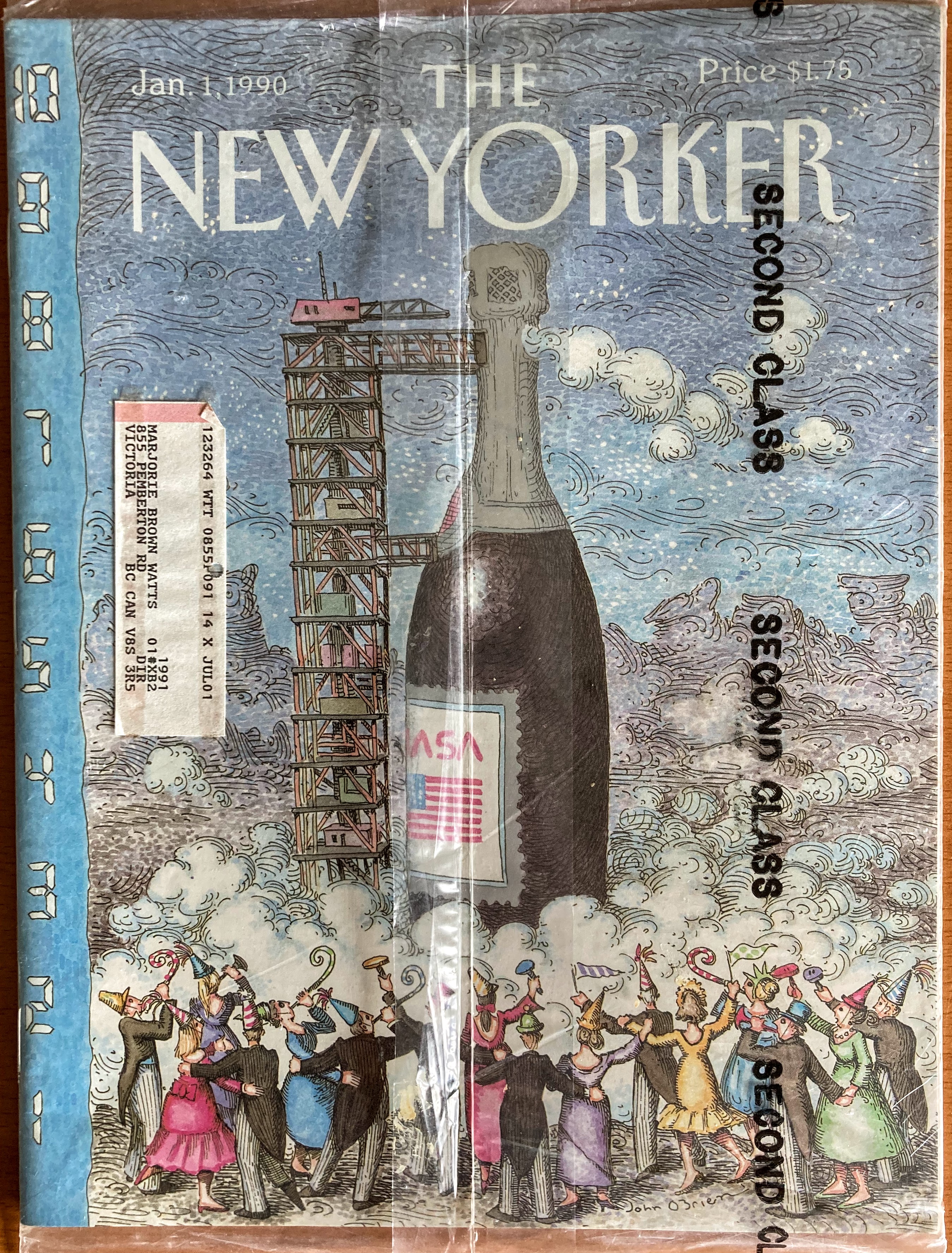 Reading the New Yorker, however, takes a great deal of time. And time becomes precious when one becomes an adult, with competing obligations in life – family, career, keeping fit, etc. After many years of picking up the odd issue at the library, it was only in 1989 – when I moved to Victoria, B.C. – that (somehow) I had the curious idea I’d have more time on my hands, time enough to justify getting an actual subscription to the famous weekly.