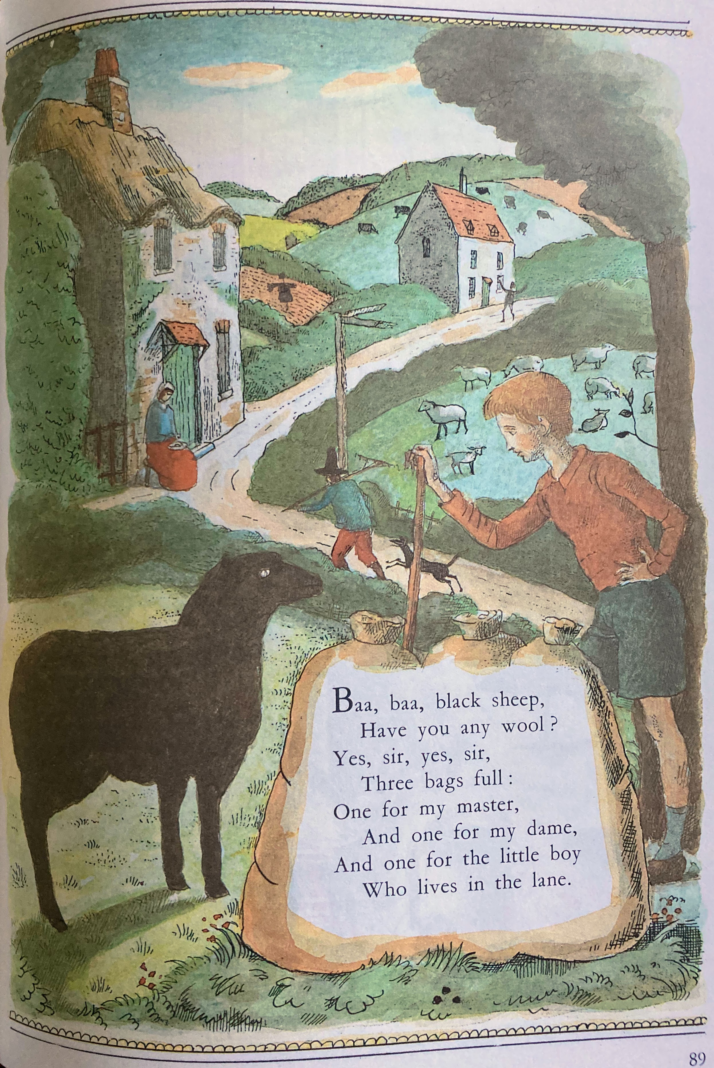 To my mind, it was most notable for its illustrations – by the accomplished British illustrator, Harold Jones (1904-1992). (They also combine talents on another book: Noah and the Ark.) I can recall my mother reading many of these rhymes to me; it’s a wonderful memory to retain.