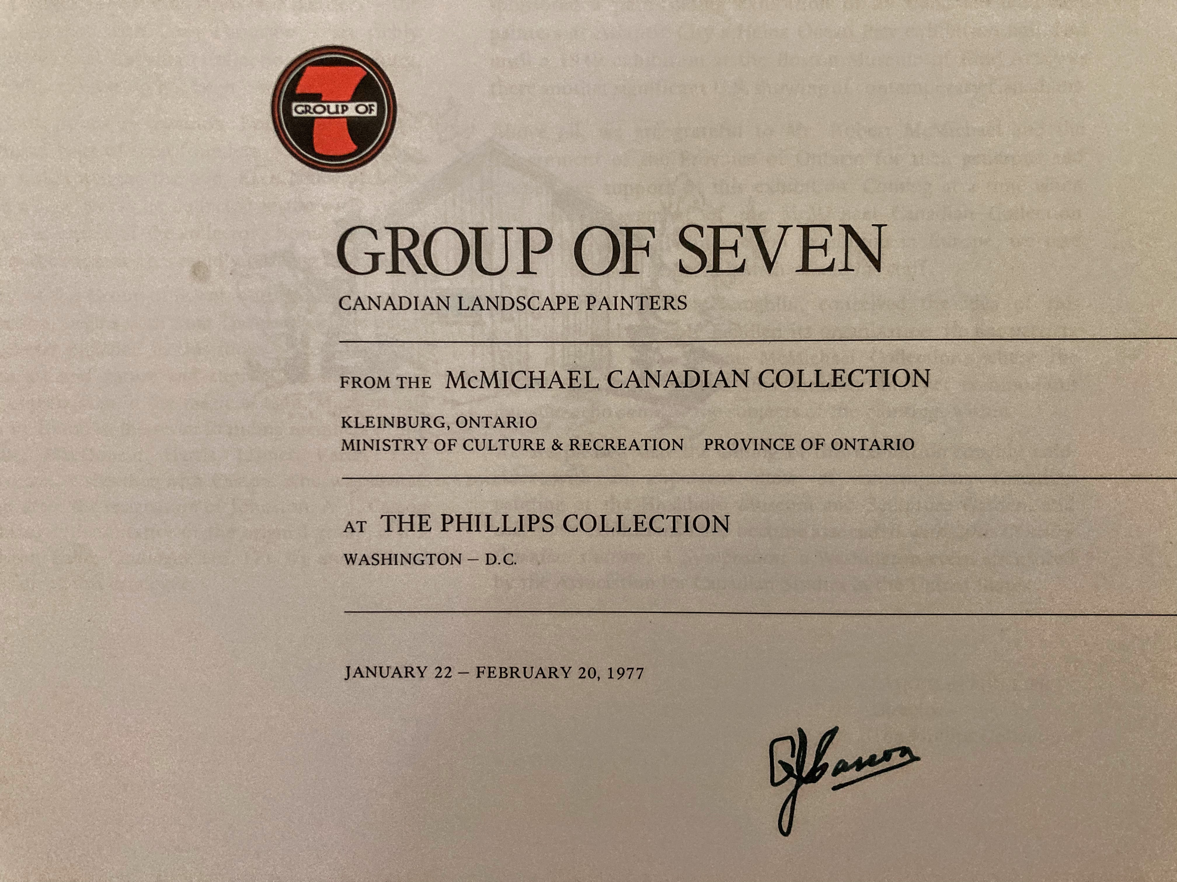 In honor of the US Bicentennial, along with assisting in organizing a symposium on 20th Century Canadian Culture, a show of contemporary painting at Washington’s Hirshhorn Museum and Sculpture Garden (14 Canadians) and a whole host of events from January to April 1977, the Embassy also helped put on an exhibition of Canada’s famed Group of Seven (loaned from the McMichael Collection) at Washington’s Phillips Collection.