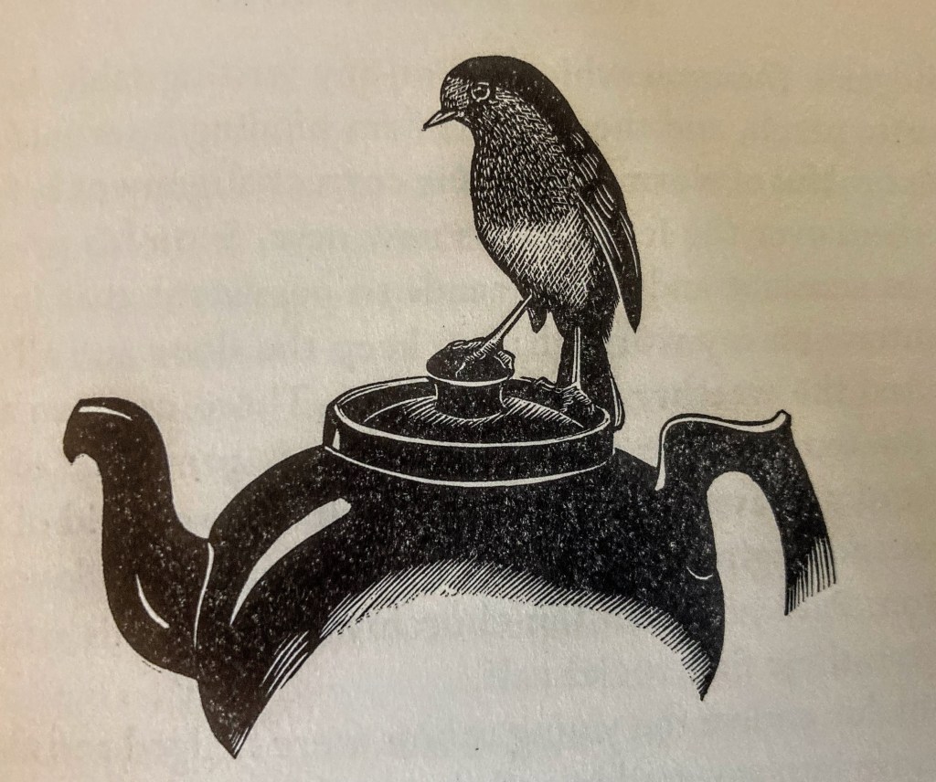 But I digress, much as Mr. Gibbings (1889-1958) was wont to do. Not surprising a tendency given Gibbings’ extensive range of interests: he was an author, naturalist, publisher, illustrator, sculptor and artist, specializing in woodcuts and engravings. Even regarded as the first man to draw underwater!