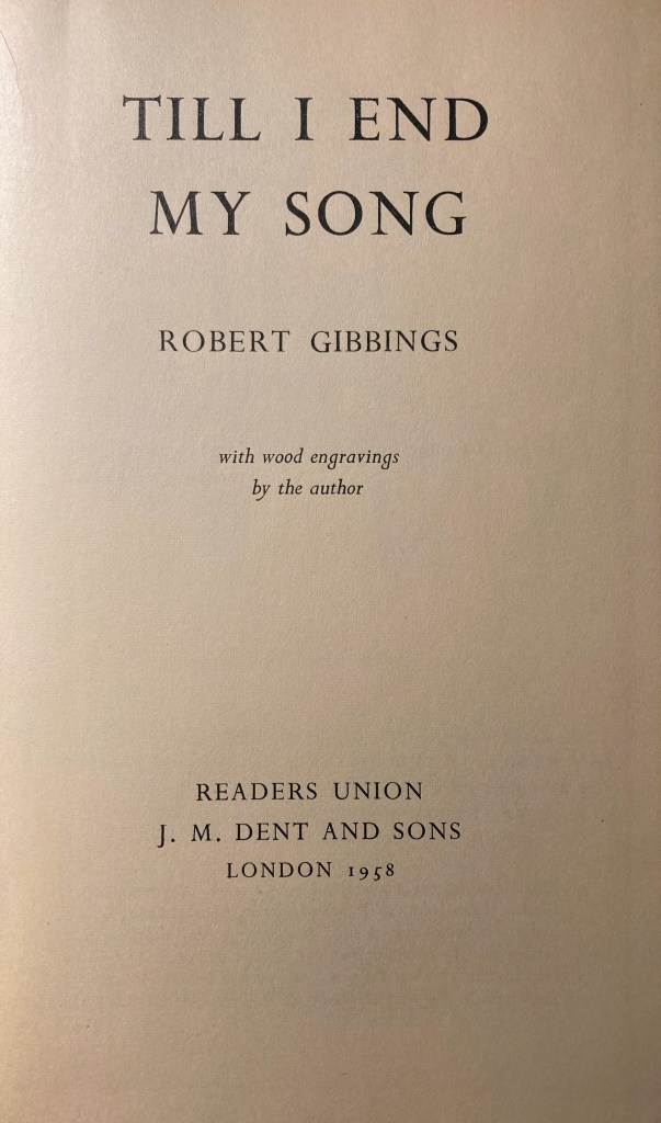 Sweet Thames Run Softly was followed by Coming down the Wye (1942), Lovely is the Lee (1944), Over the Reefs (1948), Sweet Cork of Thee (1951), Coming down the Seine (1953), Trumpets from Montparnasse (1955), and, finally, Til I End My Song (1957), all illustrated with his own wood engravings.