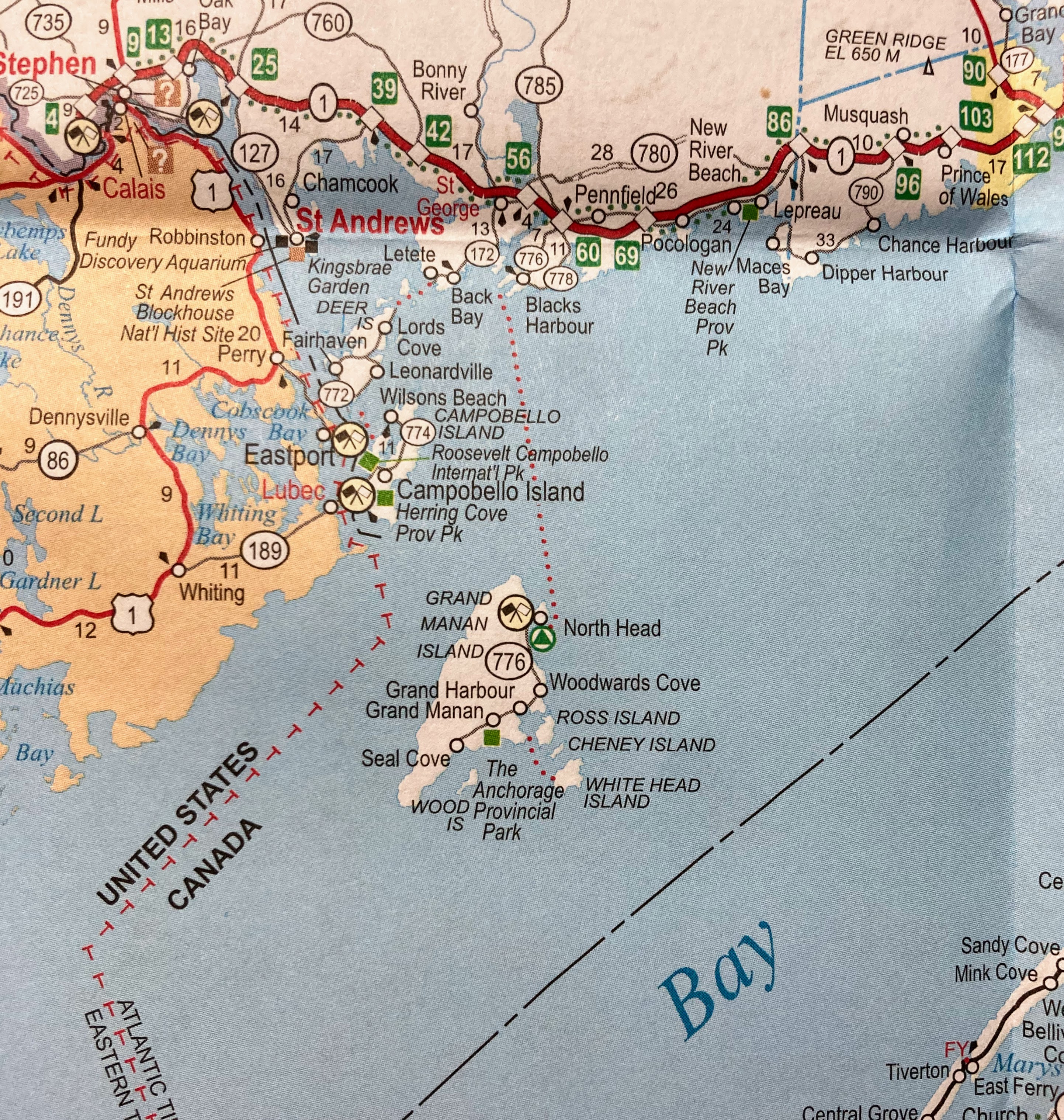 Here’s a closer look, taken from a 2021 AAA/CAA map. More detail of Grand Manan and including four smaller islands. But still no sign of Kent: