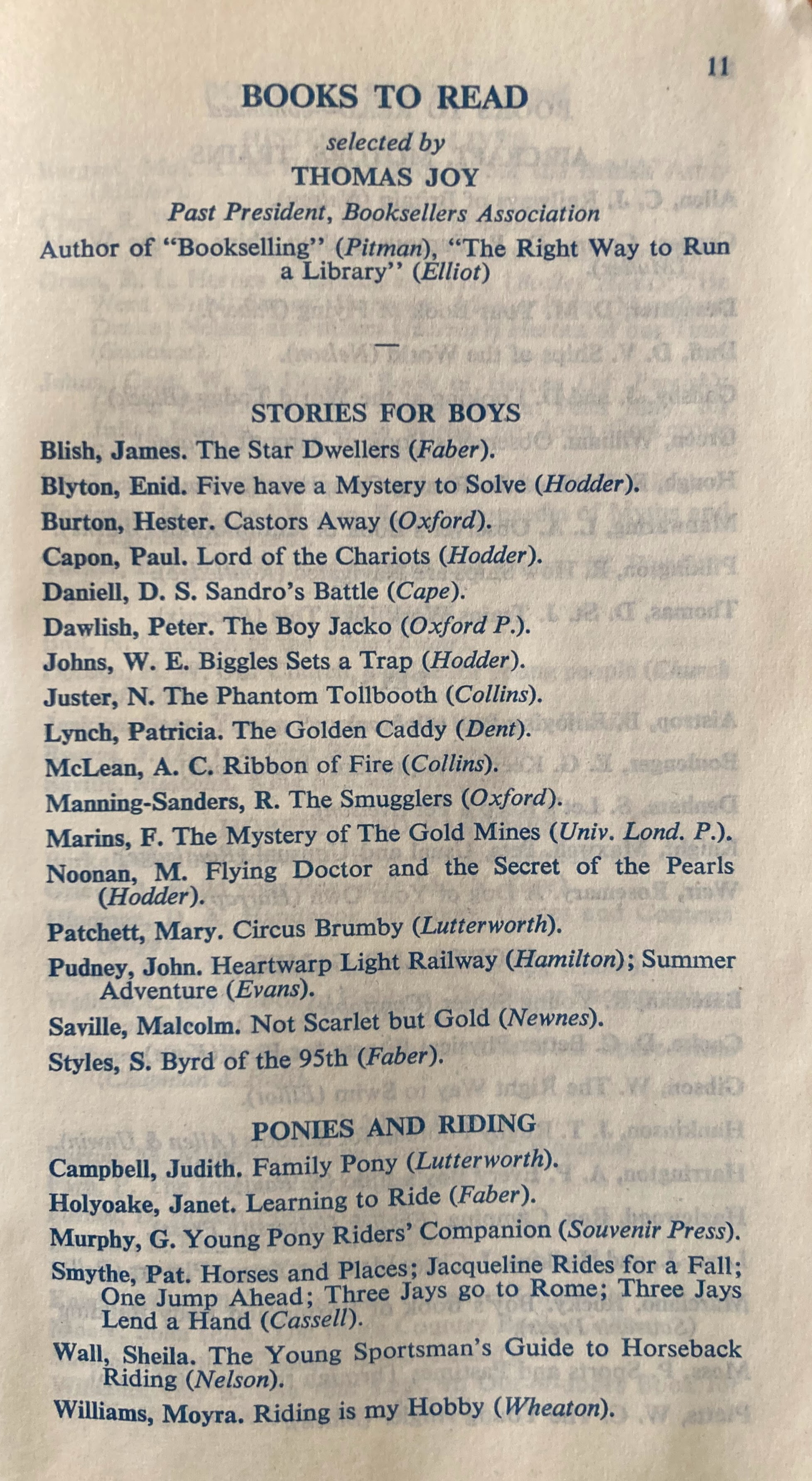 Then four pages of books to read (categories like pets, sports and games, history and lives, religion, hobbies and pastimes, nature, theatre and film, careers):