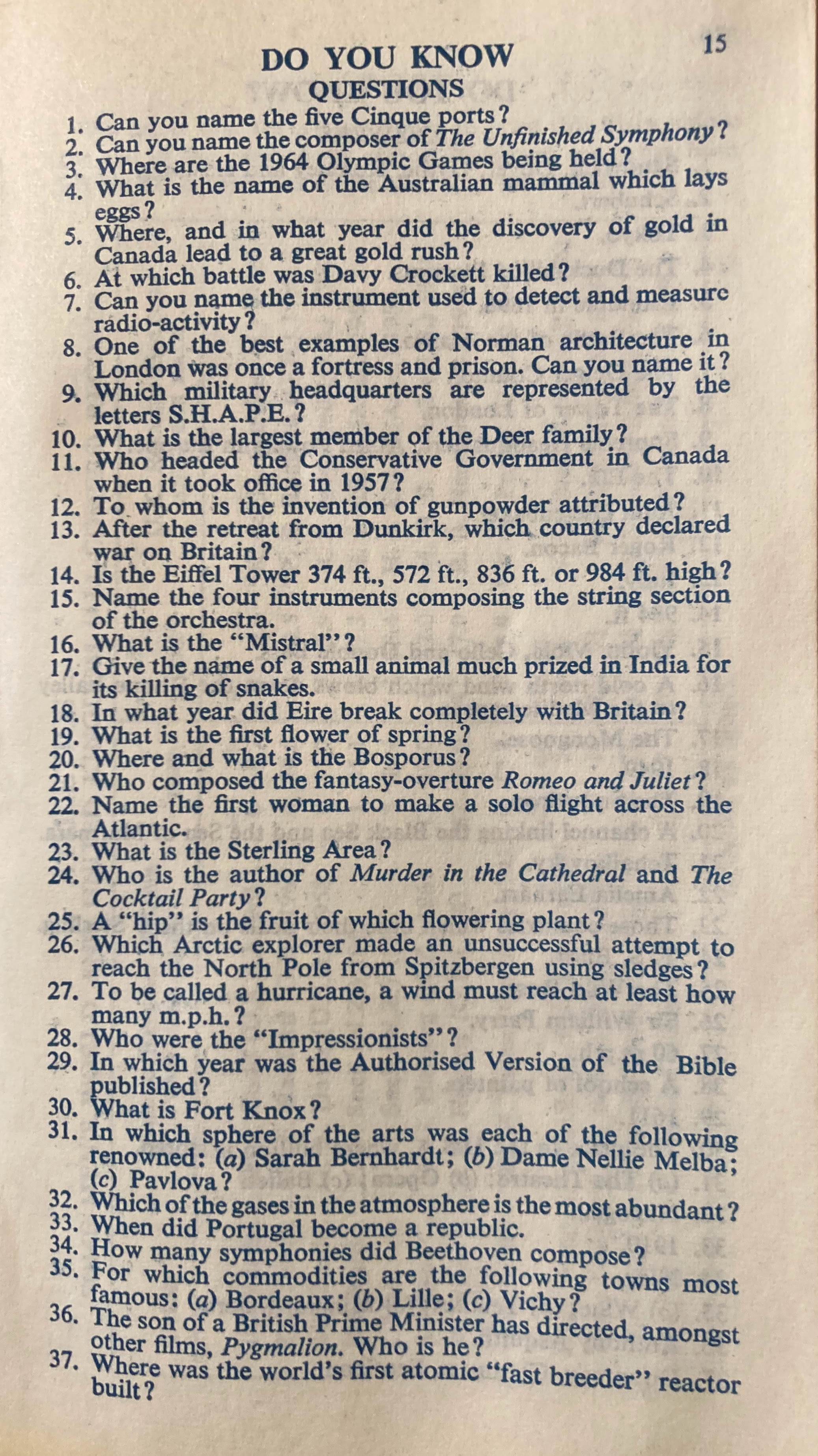 A page of esoteric questions: