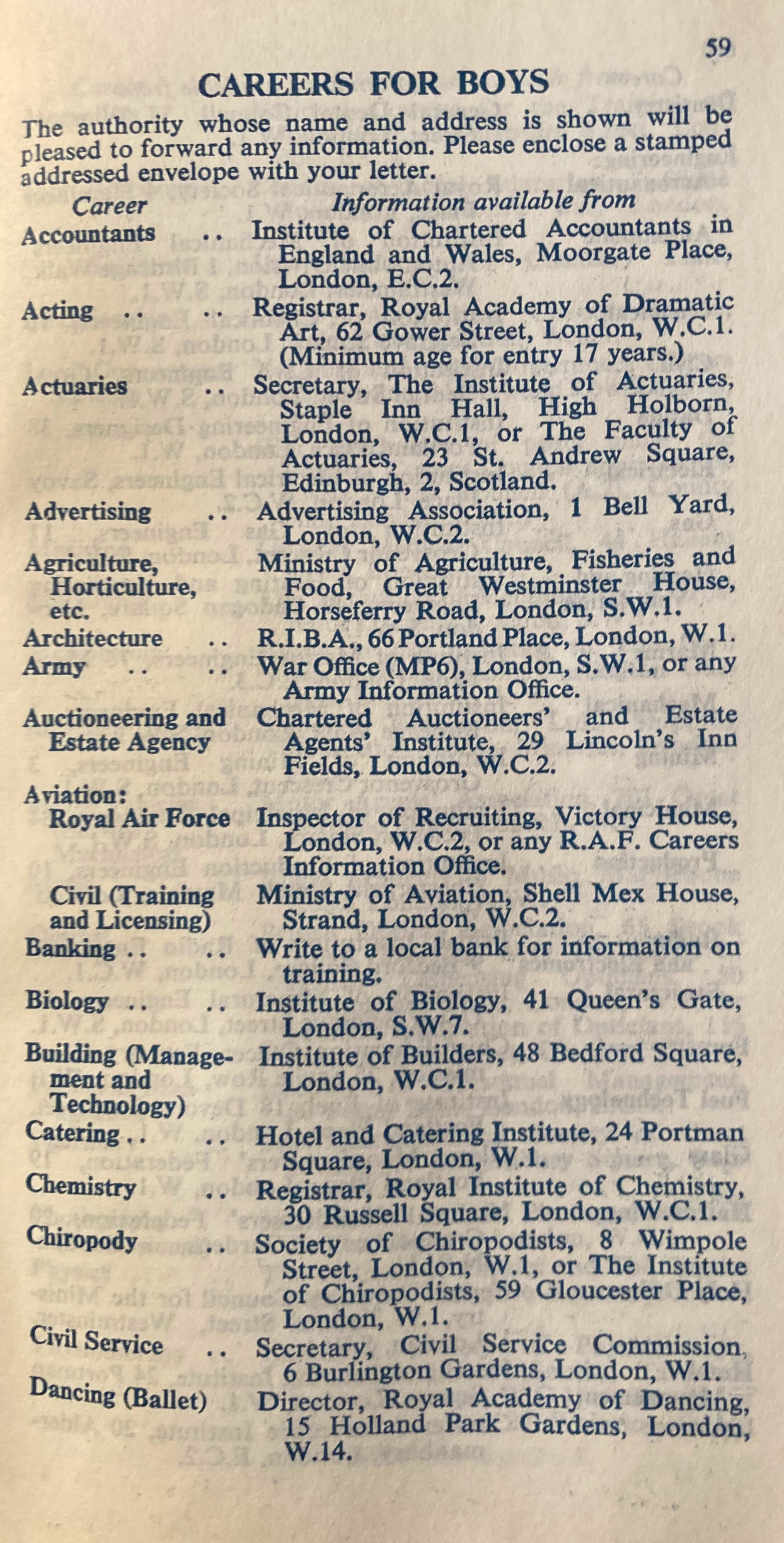 Careers for boys (not excluding acting, dance or the military):