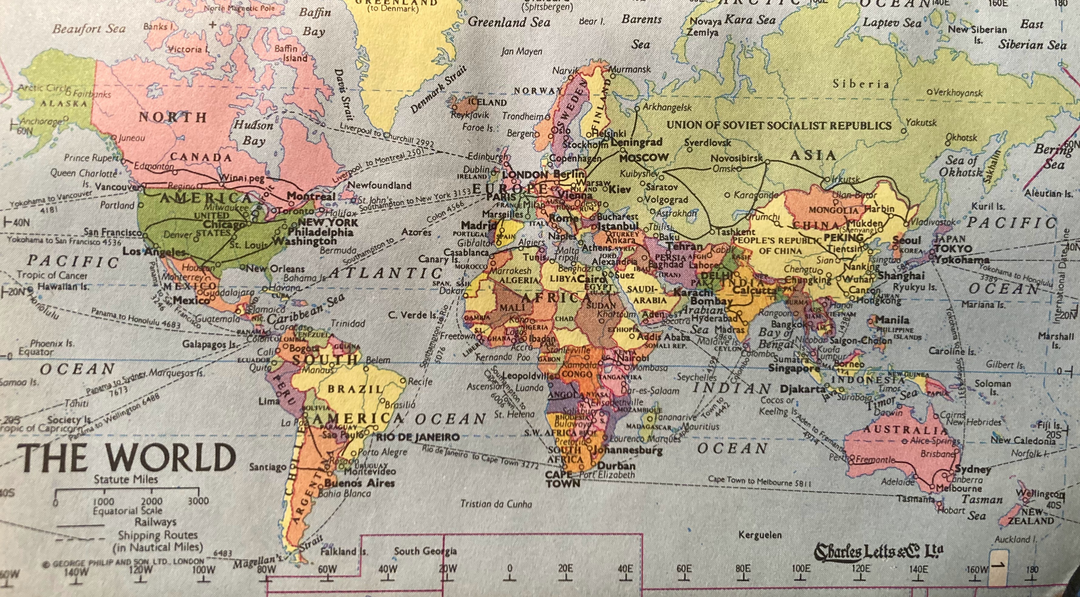 At the very end of the diary, space was provided for a school time table (filled in), exam results (also filled in), gramophone records (nothing there), films seen (12 noted), sports results, personal notes and eleven maps, covering the world.