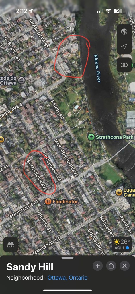 When I first moved to Canada’s capital in the early 1970’s, I lived in the Sandy Hill neighborhood, on Marlborough, just off Laurier Ave. East, midway between the Soviet and Yugoslav Embassies (see map below). The Soviet (now Russian) Embassy took up the entire corner between the Rideau River and Charlotte Street, next to Strathcona Park. The Yugoslav Embassy was two blocks over on Blackburn.