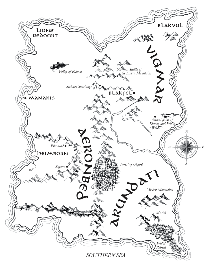 The map of the world inhabited by these characters was drawn by Shaun Carrigg, to whom the author is greatly indebted.